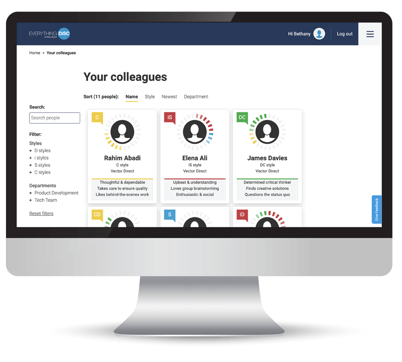 Catalyst allows participants to compare their DiSC styles to their colleagues’ styles in real time, so they can improve their working relationships while they’re occurring.